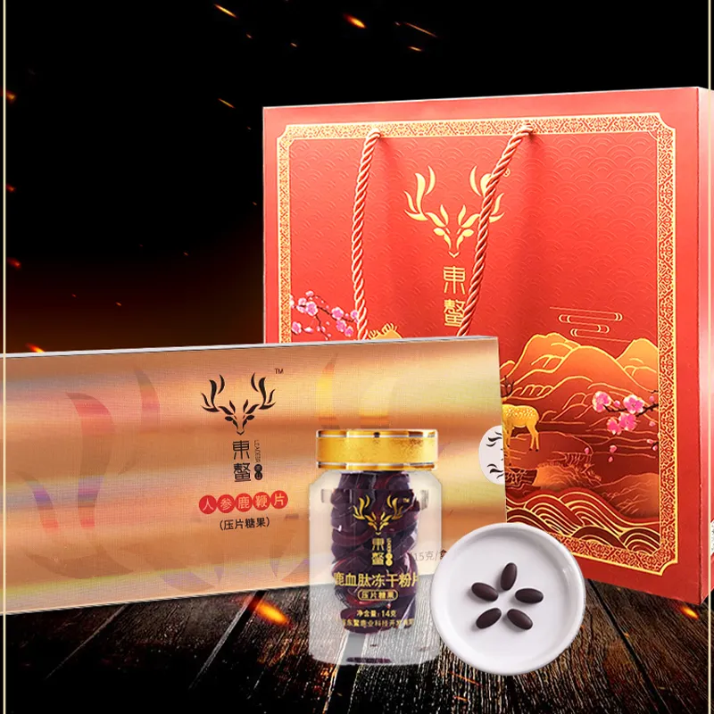 Высококачественный изысканный продукт, который повышает иммунитет, замедляет старение, восполнить дефицит питательных веществ и способствует здоровью, в подарочной упаковке. (Высококачественные и изысканные таблетки с экстрактами женьшеня и лиофилизированным порошком с пептидами из крови оленя - это таблетки с экстрактами женьшеня, которые подходят мужчинам для улучшения их физической формы, и лиофилизированные порошки с пептидами из крови оленя, которые подходят женщинам для улучшить цвет лица, поддерживает здоровое кровообращение).